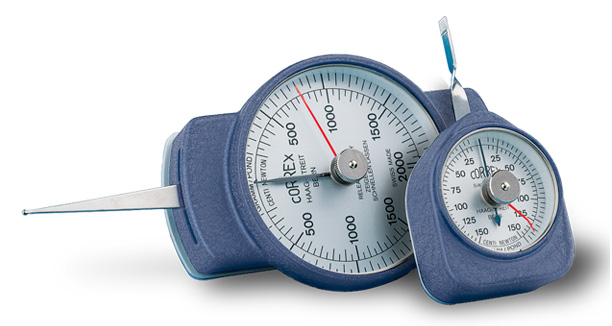 Le dynamomètre à action latérale portable CORREX BLET permet la mesure de force rapide et facile entre 0,3 et 2000 grammes. Le dynamomètre mécanique CORREX BLET produit sa force grâce à un palpeur sphérique ou à un palpeur plat, jusqu'à ce que l'élément exerçant la contre-force soit soulevé ou prenne la position de mesure désirée. La force mesurée doit être perpendiculaire à l'axe du palpeur.